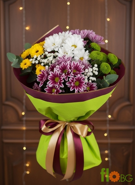 Цветно настроение – букет с хризантеми