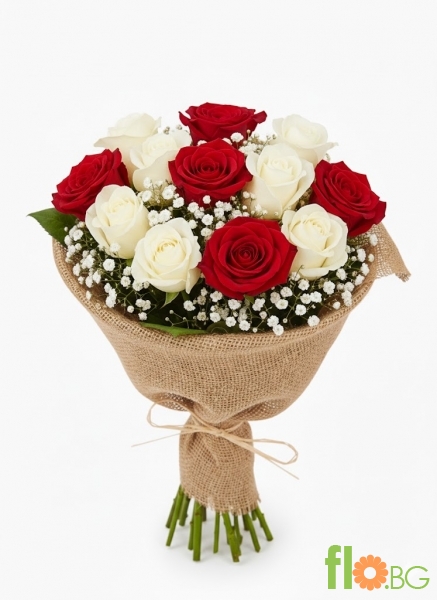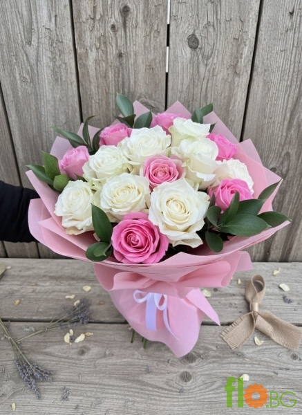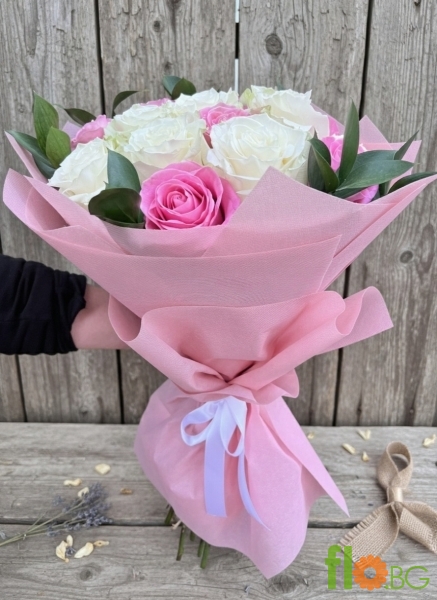 Bouquet of 15 Roses – Tenderness in Pink and White
