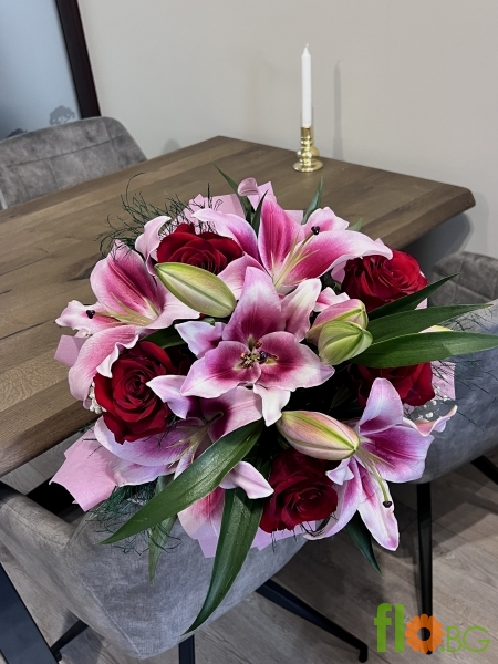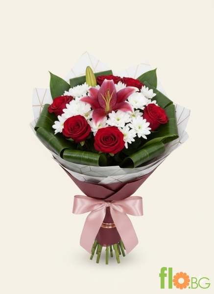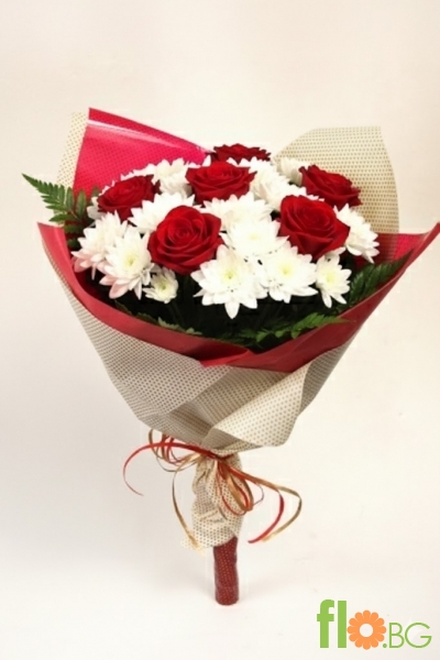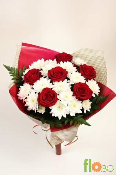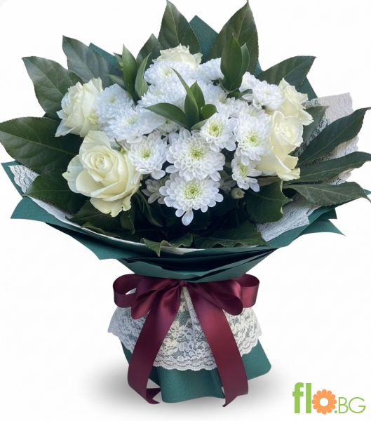 WHITE ROSES WITH CHRYSANTHEMIUMS