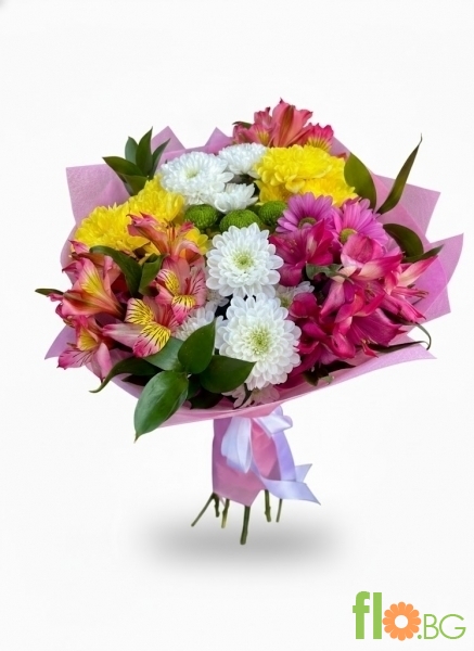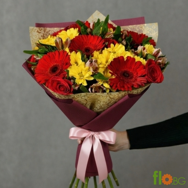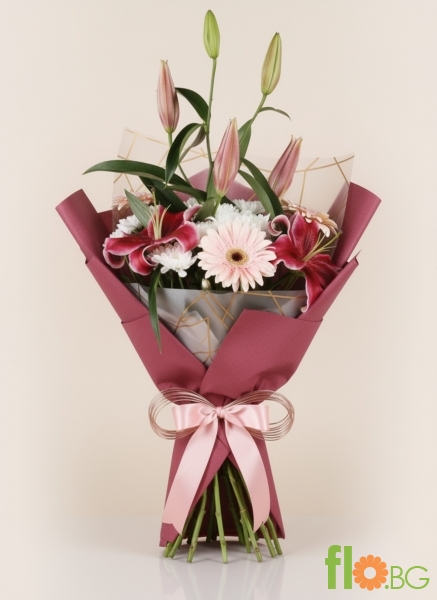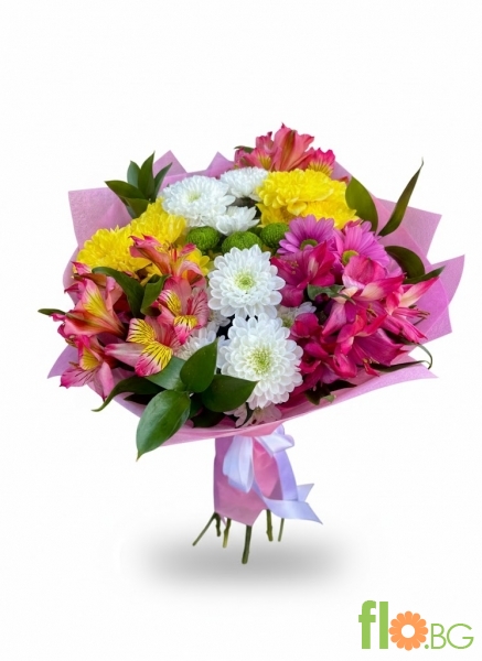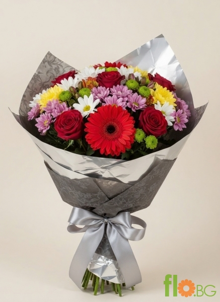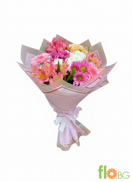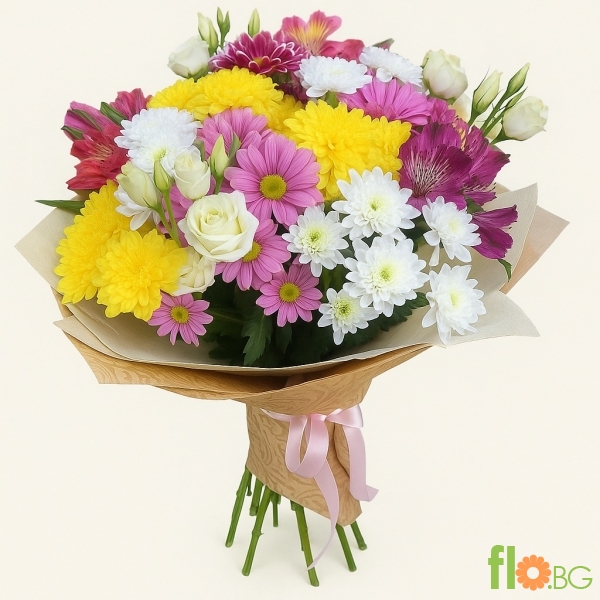 Bouquet with Gerberas & Chrysanthemums – Gentle Harmony