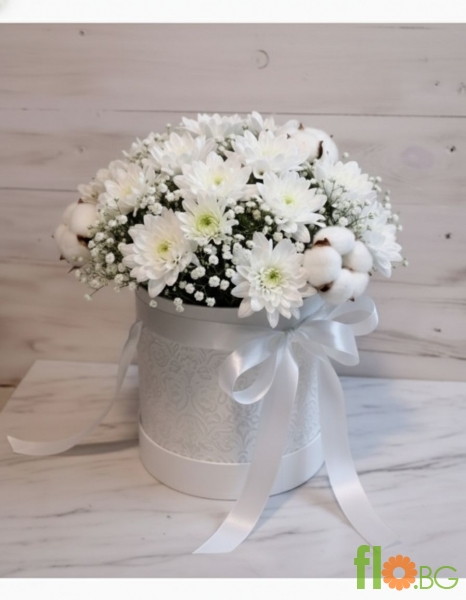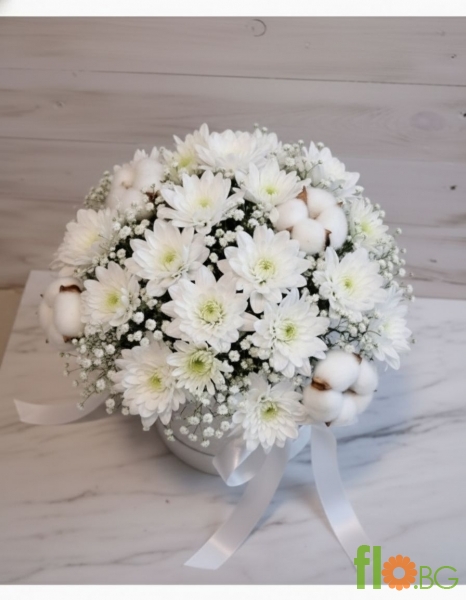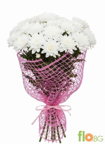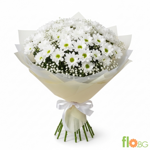 WHITE CHRYSANTHEMUMS WITH GYPSOPHILA