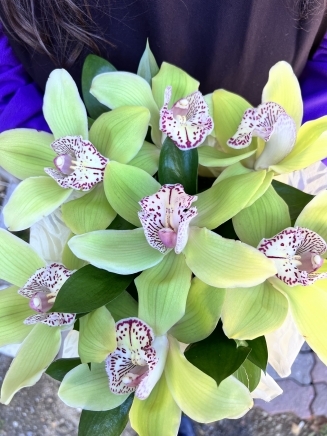 Елегантна кутия с 7 стръка свежи орхидеи цимбидиум в нежен зелен цвят. Всяка орхидея е внимателно подредена, за да създаде изтънчена и хармонична композиция. Кутията е украсена с ефирна панделка в изумруден нюанс, подчертаваща лукса и класа на аранжировката. Перфектен подарък за рожден ден, годишнина, сватба или специален човек, на когото искате да покажете внимание и стил.