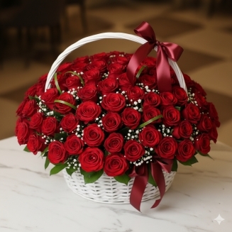 Една класическа композиция от 51 червени рози в луксозна кошница.