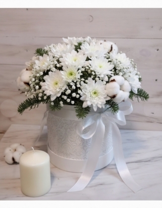 КОРОБКА С БЕЛЫМИ ХРИЗАНТЕМАМИ